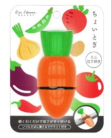 今回新発売するかわいいにんじん型の「ちょい研ぎシャープナ―」は、月に一度の本格的な包丁砥ぎではなく、日々の調理前に簡単に刃先を整える事ができる手軽で使いやすいコンパクトな商品です。裏面にマグネットがついているので冷蔵庫などに貼り付けておくことができ、包丁使用前のちょっとしたメンテナンスに適しています。球体の回転式砥石を採用しているので、軽く引くだけで包丁を研ぐことができます。