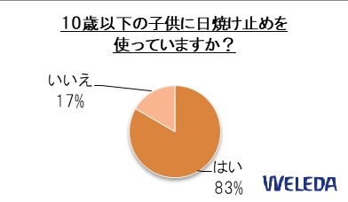 全体の83%の人が「子供に日焼け止めを使用している」と回答し、10歳以下の子供をもつ母親の5人に4人が子供に日焼け止めを使用しているという結果になりました。