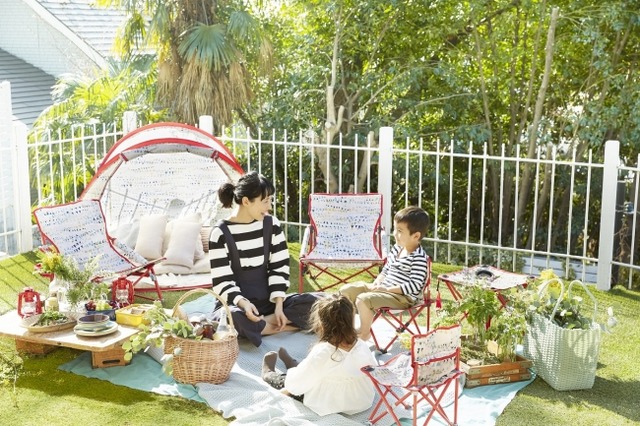 庭先や公園ではもちろん、お家の中でも気軽に楽しめる、タイニーチェアや、簡単にポップアップできるシェルター、トート型のクーラーバッグなど、コラボアイテムは全8種類。フラッグ模様に、赤を効かせたPOPなデザインはピクニックをさらに楽しくしてくれます。お花見やBBQなど、お出かけが多くなるこの時期に大活躍すること間違いなしです!