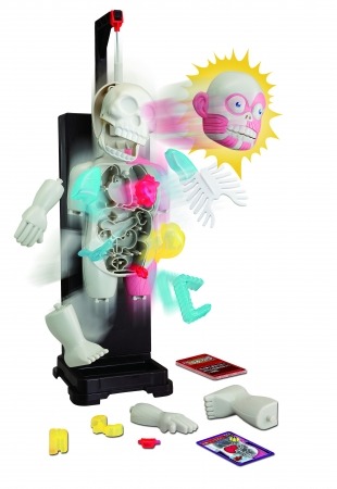 遊び方は簡単で、プレイヤーは順番にカードを引き、引いたカードの指示に従って、内臓・骨・手足パーツを本体に入れていきます。パーツをうまく入れられないと、人体模型が突然ガタガタと震えはじめ、顔や内臓など全てのパーツが派手に飛び出してくるためスリル満点です。