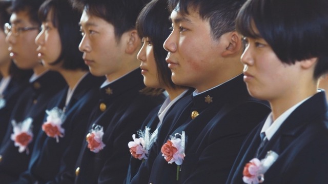 高校の卒業式のあと、何も知らされていない子どもたちが再び体育館に集められます。