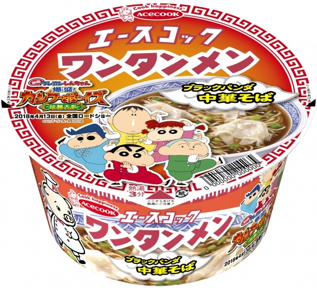当商品は、4月13日(金)に公開する「映画クレヨンしんちゃん 爆盛!カンフーボーイズ~拉麺大乱~」に登場するラーメン店「ブラックパンダラーメン」とのコラボレーション商品です。映画の題材であるカンフーをイメージし、中華らしい味わいと揚げねぎの香ばしい香りが食欲をそそる一杯になりました。