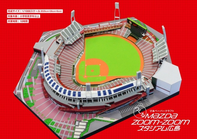 「つくる MAZDA Zoom-Zoom スタジアム広島」は、その名の通り、カープファンの聖地をペーパークラフト化。とても紙とは思えないクオリティでその形状、魅力を再現します。また単なる再現模型でなく、選手、観衆などを表現することにより、試合開催時の興奮も表現。試合観戦時の興奮が自宅に蘇ります。そして、ただ眺めるだけでなく、その制作過程も楽しめるのがペーパークラフト。テレビ観戦前に、移動日に、シーズンオフに、審判抗議中に……、ぜひマツダ スタジアムが自宅に作り上げられていく喜びを味わってください!