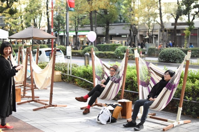 グリーン大通りのあちらこちらに、ゆったりくつろげるハンモックやクッションソファ・テーブル・ベンチなどストリートファニチャーを設置。リビングのように居心地のいいストリートでの時間を過ごしましょう。
