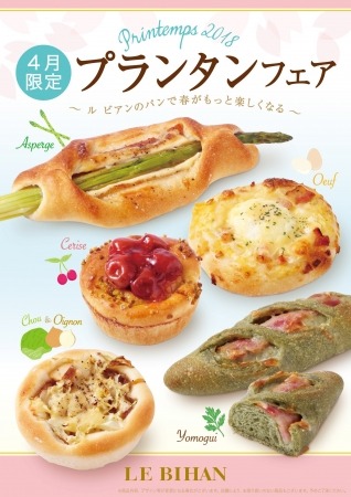 ル ビアン関西店舗にて、4/1(日)から「プランタンフェア」を開催。今が旬のアスパラガスを小麦の香ばしさ広がるフランスパン生地で巻いて焼き上げた「アスパラガスのロールフランス」や、サワーチェリーの甘酸っぱさとアーモンドクリームの甘みが口の中いっぱいに広がる「サワーチェリーのバターバンズ」など、春の食材をよりお楽しみいただける期間限定パンをご用意しております。