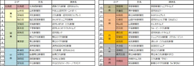 参加新聞社:こども新聞 週刊かほピョンプレス、週刊まなびー、週刊さんいん学聞(まなぶん)、週刊阿波っ子タイムズ、GODOジュニア
