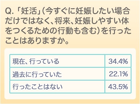 今回のVol.34では、「妊娠準備~妊活の実態」についての調査結果をお届けします。
