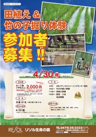 【リソル生命の森『田植え&竹の子掘り体験』イベント(予約制)の概要】