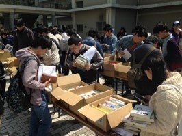 卒業する学生や退職する教職員などから不要になった本を、2月頃に回収し、4月に委託販売するイベントで、2008年度から毎年開催しています。売上金は本提供者の希望により返金するか、または、大学の環境活動のための基金に寄付されます。