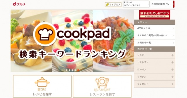 『dグルメ』は、NTTドコモが運営する、レシピやレストラン検索など食に関わるさまざまな情報をまとめて検索できる、会員限定グルメ系ポータルサイトです。