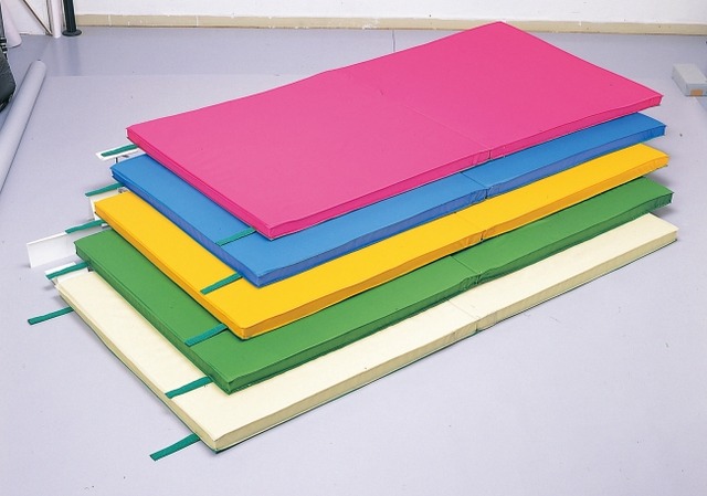 2つ折りにしたときに、マットがバラけないようにベルトで止められます。また軽量で扱いやすく、保管や後片付けが簡単なので忙しい先生方の負担軽減です。
