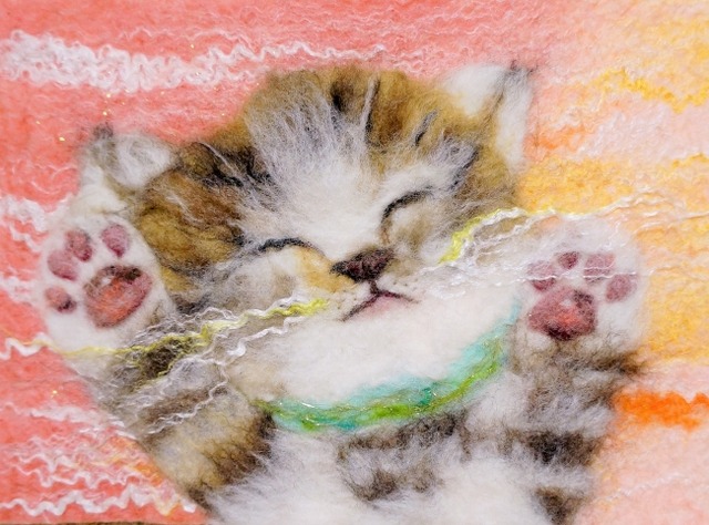 普通の絵画ではないんです!柔らかな風合いに仕上がる羊毛や光沢感を表現するシルクで描かれた絵画。絵の具を使用した作品とは異なり、温かみや懐かしさを感じさせます。