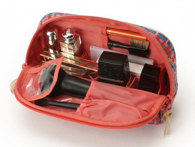 メイクのスキルが上がるにつれて自然と増えてゆく、ペンシル、マスカラ、グロスにブラシ類などを、スマートに収納。メイク道具のひとつひとつが機能的に収まるので、ポーチ内はいつでも美しく整然といられるのが特徴です。