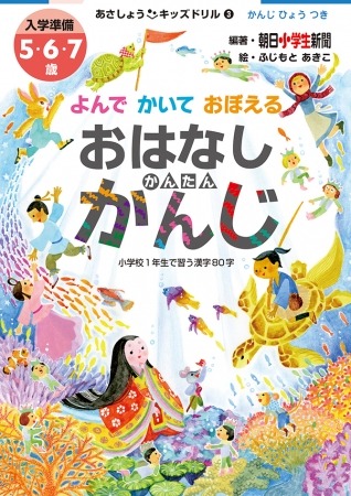読み聞かせなどで親しんでいる昔話を使って、1年生で習う漢字80字を練習するドリル。入学準備の5・6・7歳向けです。