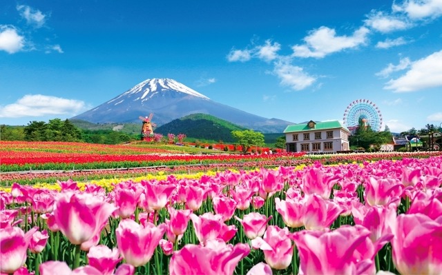 遊園地ぐりんぱ(静岡県裾野市)では、「2018天空のチューリップ祭り」を平成30年4月21日(土)から5月27日(日)まで開催致します。この「天空のチューリップ祭り」は、富士山2合目(標高1,200m)という絶好のロケーションで、どこまでも広がる花畑に咲き誇る、赤や黄色・ピンクや紫等の色鮮やかな20万本のチューリップと世界遺産 富士山との競演をお楽しみいただける、春の風物詩といえるイベントです。