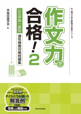 朝日学生新聞社出版部( www.asagaku.jp/ )は『作文力で合格! 2 公立中高一貫校適性検査対策問題集』(早稲田進学会・著、本体1,300円+税)を3月31日に発売しました。朝日小学生新聞で連載した「公立中高一貫校合格力講座」から、作文問題編をまとめたものです。