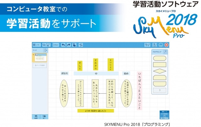 SKYMENU Proは「主体的・対話的で深い学び」を目指し、子どもたちが試行錯誤しながら考えを深めていく学習活動をサポートします。SKYMENU Pro 2018では、プログラミング的思考の育成に役立てられる機能を追加するなど、学習活動で使える「思考ツール」を充実させました。