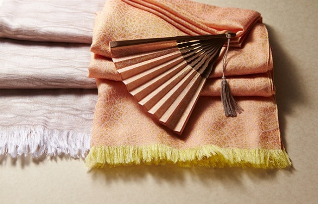 伝統的なものの素晴らしさも現代的で新しい感性も知っているお母さん世代。伝統とモードを掛け合わせ、上質なストールは、「水」がデザインのテーマです。小原流家元小原宏貴さんの「生命の源でもある水のような、しなやかな姿をまとって輝いてほしい」との言葉から、生地にあえて「よじれ」をもたせることで、神秘的で美しい水面を表現した播州織でしか作ることのできない逸品が生まれました。高級感あふれるパーリーコットン(R)とシルクのほんのりとした繊細な透け感が、ふだんの洋服にも和装の着こなしにも上品な華やぎをそえます。
