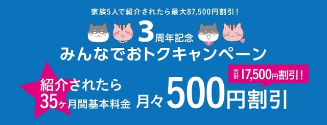 被紹介者さま……ご契約1件ごとに毎月のご利用料金を500円割引(最大35ヵ月間)