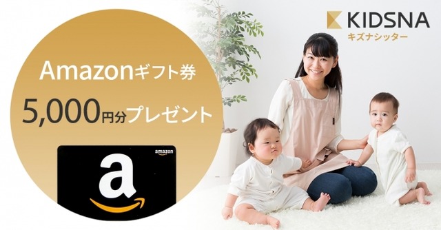 本キャンペーンは「はじめてのシッターお試し代」として、キズナシッターを新規でご利用いただいた方に、ベビーシッター1回あたりのおおよその利用料である5000円分のAmazonギフト券をプレゼントするものです。