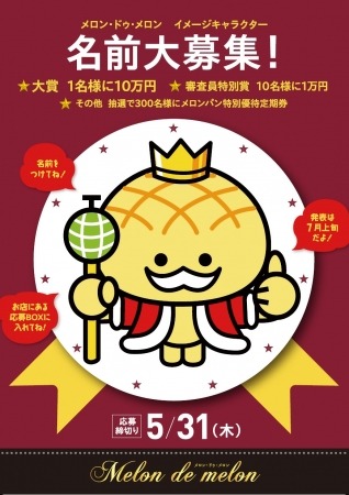 大人気のテイクアウト型メロンパン専門店「Melon de melon(メロン ドゥ メロン)」(株式会社サンライズ、本社:東京都中央区)では、イメージキャラクターの名前を一般募集いたします。