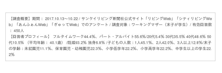 本リリースでは、ワーキングマザーの全体的な特徴を紹介しました。【全体/働き方×末子学齢別】【クラスター別(ワークライフバランスやキャリア志向などによる分析)】の詳細レポートは、リビングくらしHOW研究所サイト(下記)で公開しています。