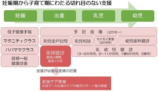 子育てにはいろいろな不安が多いもの。特に産前産後は、体や環境の変化によって情緒が不安定になりやすい時期でもあります。佐倉市では、平成30年4月から、出産後間もないママのこころとからだの健康状態をチェックする「産婦健康診査」の費用助成を始めました。妊娠期から子育て期にわたる切れ目のない支援の実現をめざします。