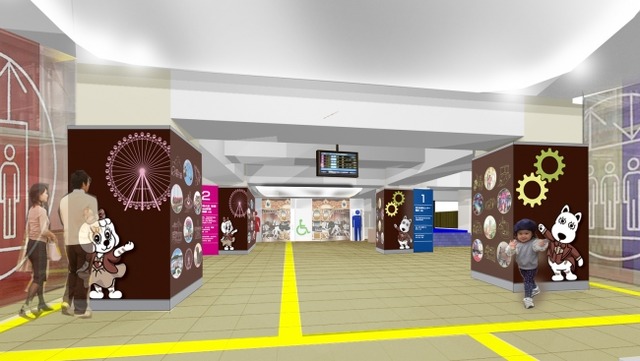 駅装飾は、よみうりランドの最寄駅として訪れるお客様の「ワクワク感」を演出するために、よみうりランドのキャラクター「グッドとラッキー」が園内の各アトラクションを紹介しています。