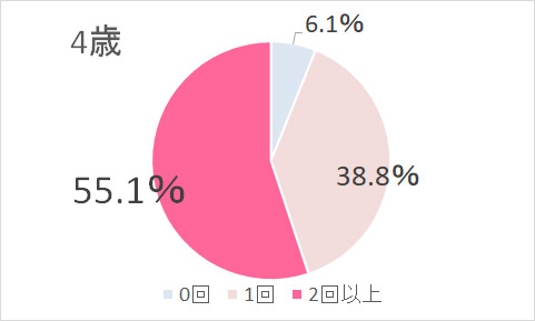 パパ・ママによる子どもたちの仕上げ磨きの回数は、6歳児になると、1日2回実施していた層が減り、逆に1日1回の実施層が増え65%以上に。