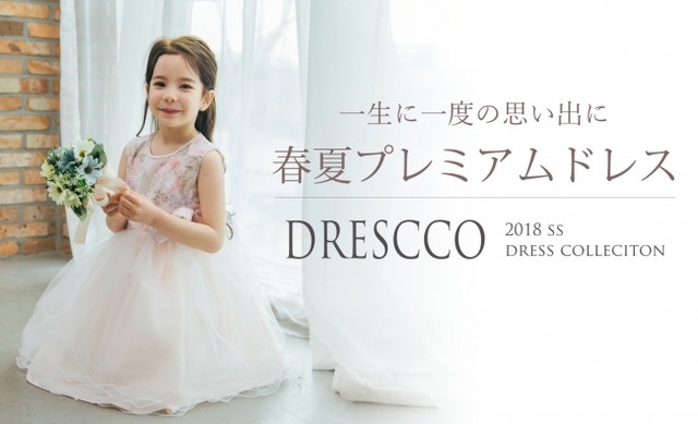 DRESCCO(ドレスコ)は、海外のドレス工房とコラボレーションしたSS新作ドレスコレクションを、2018年5月3日から本店 (www.drescco.com) にて発売いたします。待望のロングドレスから、大人っぽいホルターネックドレスまで、子供ドレスの専門デザイナーが手掛けたお勧めのドレスばかりをご用意しました。春から夏に向けての発表会やコンクール、結婚式の主役になること間違いなし!