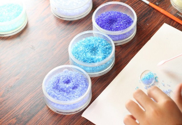 ガラスは様々な金属を添加することによりピンクや青、紫や赤など様々な色に変化します。そうした様々な色のガラスを板ガラスの上に振りかけ、“フュージング技法”と呼ばれる約850度の高温でガラスを溶かし融合させて、世界にたった一つだけのアクセサリーを作っていきます。