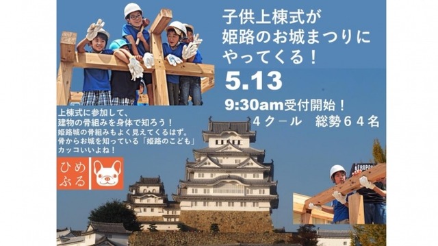 第16回ひめぶるイベント、2018年5月13日(日)の「姫路お城まつり」で毎年恒例の姫路城三の丸広場での子供イベントで、ひめぶるオリジナルキットによる「子供上棟式」を行うことになりました。