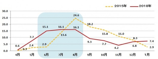 ランドセルの購入(予約)は、年長の5月が7.7%、6月が15.1%。2015年の調査では同月は2%台(グラフ1.参照)だったことからも動き出しが早まっているのが分かります。また、3年前は8月購入が24.6%と突出していましたが、今回は7月、8月ともに16.1%と6~8月にかけて購入が分散化しています。ママたちのクチコミで「早く買わないと欲しいランドセルが買えない」と広まり、8月までにランドセルを購入するのが定着してきているようです。