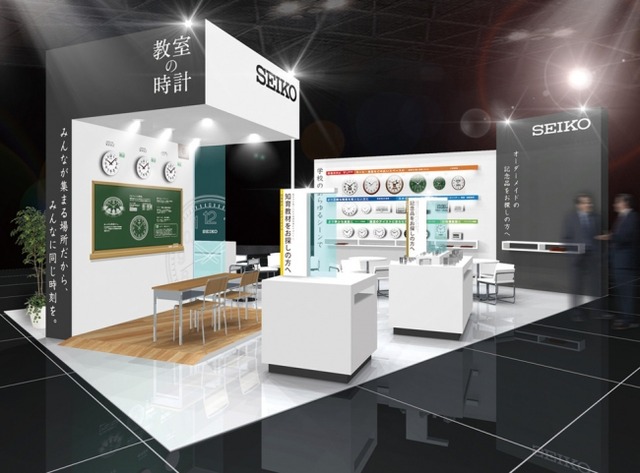 弊社ブースでは学校での様々なシーンに適したクロックの他、卒業記念、周年記念に好適な時計など数多く展示しご覧いただけます。