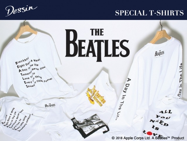 ワールドグループの株式会社イノベーションリンクが展開するライフスタイルストア「デッサン」は、5月中旬より、“The Beatles (ザ・ビートルズ)”別注Tシャツを全国の店頭とブランド公式サイトhttp://store.world.co.jp/s/brand/dessin/ で発売します。「デッサン」は、ブランドデビュー以降、上品なトラッドをベースに、ナチュラルで、リラックスしたスタイリングと雑貨までを取り揃えたライフスタイル提案によりファンを拡大してきました。今回発売するTシャツは、“ザ・ビートルズ”の「All You Need Is Love」、「Here Comes the Sun」などのタイトルや曲、メンバーのポートレートをプリントした5種類で、ホワイト、ネイビー、グレーといったベーシックカラーをベースにメンズ、レディース、キッズを展開しています。