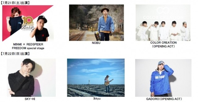 この度、出演アーティストの発表第三弾として、 まず7月21日(土)に出演するのは、『FREEDOM』を長年牽引してきたMINMIとREDSPIDERです。「MINMI × REDSPIDER FREEDOM special stage」と称し、コラボステージを披露することが決定しました。さらに、ジャンルにとらわれない音楽スタイルでオーディエンスを沸かせ続けるシンガーNOBUと、美しくもパワフルで説得力のある歌声が魅力の次世代のボーイズ・ボーカルグループCOLOR CREATIONが登場します。