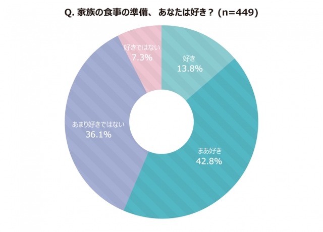 ■ 「家族の食事の準備が好き」なママは約6割だが、「あまり好きではない」も約4割と拮抗。