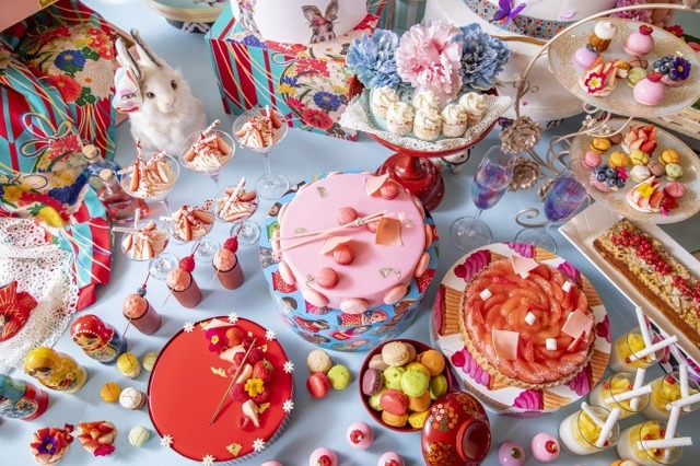 しっとりとした歯触りのマカロンの上に、カシス、ラズベリーと蘭のアロマを効かせた半円型ムースを乗せた新作『とてたまマカロン』、ほのかな桜の香りとグレープフルーツの爽やかな酸味、タルトのサクサク感をお楽しみいただける『さくらふわりピンクグレープフルーツのタルト』、塩味を効かせたココナッツケーキに、まるでウサギのしっぽのようにクリームをあしらった『ラパン・ブラン ソルティーココナッツ&アプリコット』ほか、優しい甘さの白桃のムースに、酸味の強いペッシュ・ド・ヴィーニュ(赤桃)と紫蘇のマリネを忍ばせ、マカロンをトッピングする『ペッシュ・ミニヨン』、色鮮やかなフランボワーズのグラサージュとサイドの格子模様のチョコレートがユニークな『晴れ着ルージュ』などのスイーツをお楽しみいただけます。