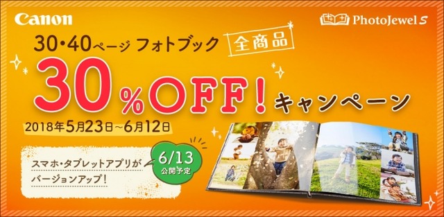内容:PhotoJewel Sの30ページ、40ページの商品がすべて30%OFFで購入できます。