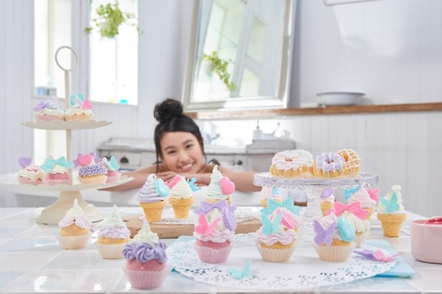 2018年7月に登場する「しゅわボム」シリーズは、カップケーキの形をしたバスボムを6個作れる「しゅわボム カップケーキベーシックセット」をメインに、ソフトクリームやドーナツが作れるセットや、カラフルなバリエーションで遊びの幅がより広がる、バスボムの粉やクリームの粉など、総勢9種類のラインナップで展開します。