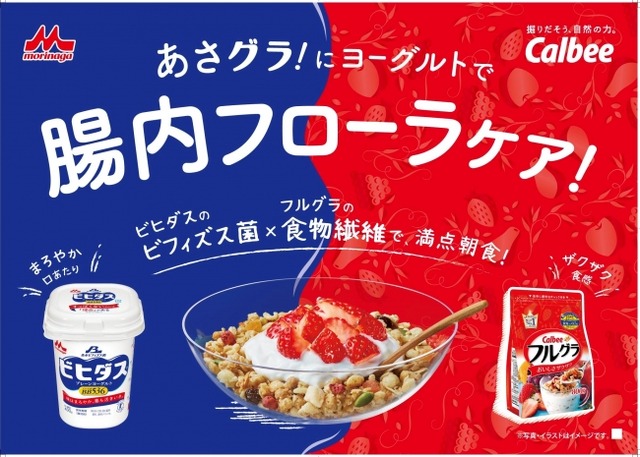 カルビー株式会社(本社:東京都千代田区/代表取締役 兼 COO:伊藤 秀二)と森永乳業株式会社(本社:東京都港区/代表取締役社長:宮原 道夫)は、「あさグラ!にヨーグルトで腸内フローラケア!」を6月1日(金)より全国にて展開いたします。