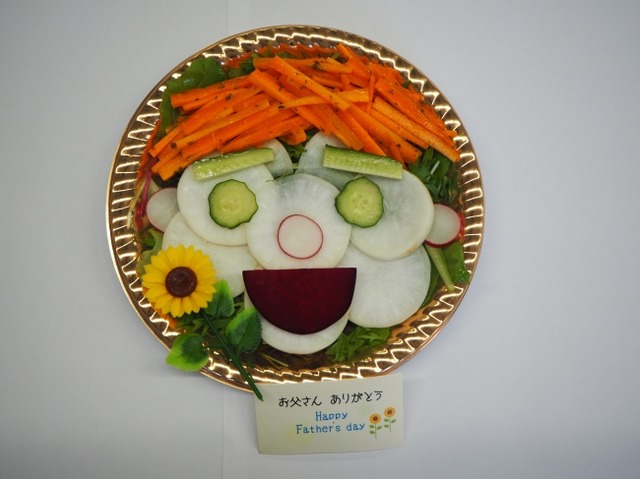 九州屋は、全国の百貨店を中心に展開している青果専門店です。全国で積極的に食育活動を行っています。今回は父の日のスペシャル企画として、有機農業に取り組む「耕す 木更津農場」で収穫した有機野菜をふんだんに使った、美味しくヘルシーな似顔絵サラダを制作します。