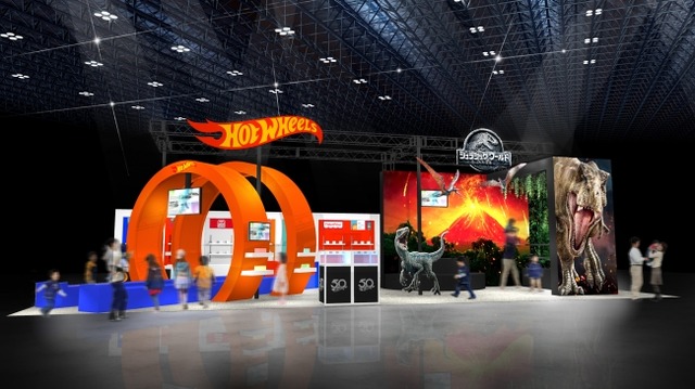 本年度マテル・インターナショナルのブースでは、1968年に販売を開始し今年2018年に発売50周年を迎える、販売台数世界一のダイキャストカーブランド「ホットウィ―ル」と、7月13 日(金)に日本で公開される人気SF シリーズ最新作「ジュラシック・ワールド/炎の王国」関連商品を中心とした、世界最大のトイメーカーだからこそ実現できる展示を予定しています。誕生から今年で50周年を迎えるホットウィ―ルの発売当時の伝説のミニカー「スウィート・シックスティーン」の展示や、ジュラシック・ワールドに登場する巨大で迫力満点なT-レックスなど、おもちゃ好きにはたまらない展示にも注目です。