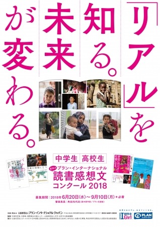 国際NGOプラン・インターナショナルは、「夏休み読書感想文コンクール2018 『リアル』を知る。未来が変わる。」(後援:文部科学省、外務省ほか)を開催します。本コンクールは、次世代を担う中高生に、読書を通じて過酷な環境に置かれている女の子や女性たちの「今」、「等身大の姿」、「夢や可能性」を知ってもらい、よりよい世界をつくるために何ができるかを考え、その声を発信する機会となることを目指しています。