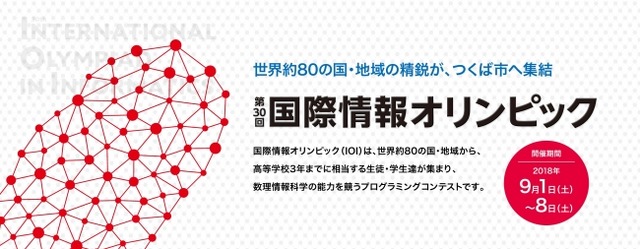 世界約80の国・地域から、高等学校3年までに相当する生徒・学生達が集まり、数理情報科学の能力を競うプログラミングコンテスト。1989年にブルガリアにて第1回大会が開かれて以降、毎年参加国が持ち回りで開催しており、参加国の中学・高校生の数理情報科学教育の飛躍的な振興に大きく寄与しています。第30回となる今年の開催地は茨城県つくば市。30年近くにも及ぶ歴史の中で、日本での開催は今回が初となります。