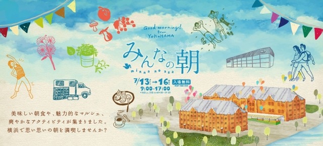 横浜赤レンガ倉庫は、7月13日(金)~7月16日(月・祝)までの計4日間、イベント広場にて朝時間の充実をテーマにした朝活フェス「みんなの朝」を今年初開催します。