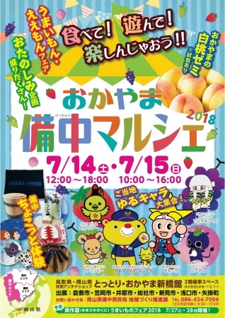 岡山県の西部に位置する備中エリアを食べて!遊んで!楽しむイベントを鳥取県・岡山県共同アンテナショップ“とっとり・おかやま新橋館”(東京都港区新橋)で開催します。備中エリアのおいしいもの・良いものを試食・販売する“うまいもん・ええもんフェア”、倉敷オリジナルデニムストラップ作りなどの“備中ちょこっと体験”、備中エリアの名産品・特産品が当たる“お楽しみ抽選会”など、ご家族やお友達と一緒に楽しめる催しが満載です!ご当地ゆるキャラが大集合しての撮影会もありますので、ぜひお越しください。