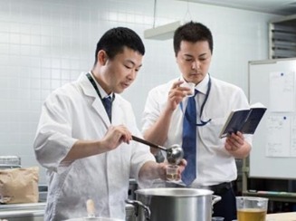 ミツカンは、おいしさを追求しミツカンの味づくりをサポートする組織「味確認室」を、2014年に立ち上げました。おいしさの追求のため、一流料理店で修業するなどのトレーニングを行い、実際に料理人が使う言葉・感覚を体感することで、料理人の言葉の本質を理解していきます。また、商品開発時は一流料理人のアドバイスをいただくために、一流料理人と開発部門の橋渡しも行います。一流料理人の方々のアドバイスには、プロの方独特の味の表現の仕方が存在します。例えば「のどに引っかかる」という表現は、「塩分が強い」ことを意味することもあります。「味確認室」は一流料理人の方のアドバイスの本質を理解し、わかりやすく翻訳して社内に伝える役目を果たし、一流料理人と社内をつなぐ「“味言葉”の翻訳家」でもあるのです。