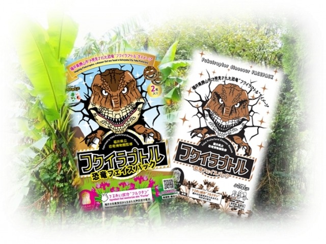 “フクイラプトル”のデザインと“フルクタン”配合のフェイスパック。この恐竜フェイスパックはまさに、