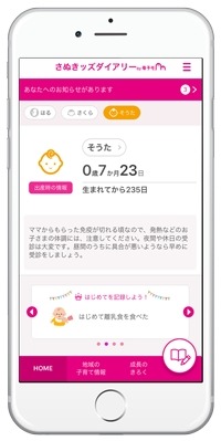さぬき市に採用された『さぬきッズダイアリー』は、スマートフォン・タブレット端末・PCに対応したサービスで、妊産婦と子どもの健康データの記録・管理や予防接種のスケジュール管理、出産・育児に関するアドバイスの提供など、育児や仕事に忙しい母親や父親を助けてくれる便利な機能が充実しています。